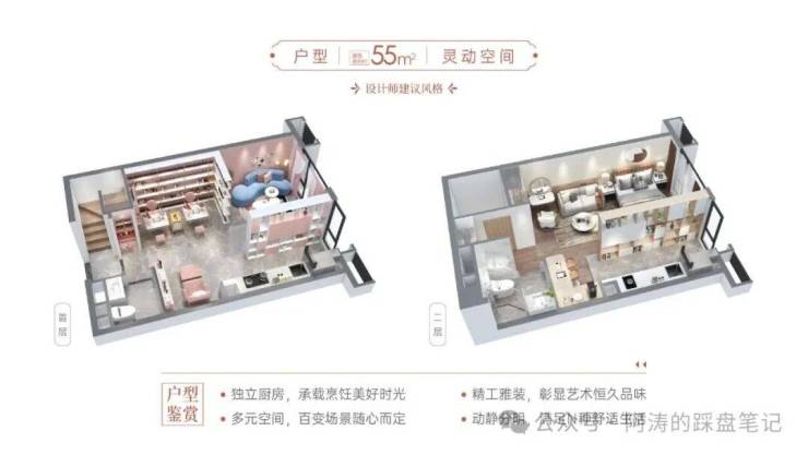 户型设计灵活:推出45-95㎡复式LOFT及95㎡高厅大平层,层高约4.5-5米,空间利用率高,可分租或自用,适合年轻群体和投资者。