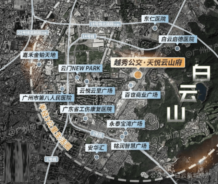 项目位于白云新城盘,开车5分钟就可以畅享白云新城商圈的成熟配套。