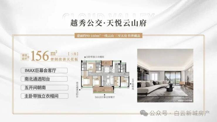 特点:南北通透双阳台设计,瞰景阳台约6.9米,五开间朝南,主卧带独立衣帽间。