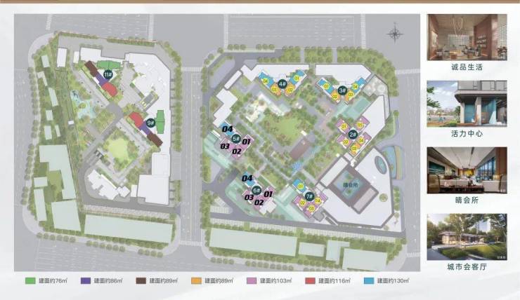 东侧地块采用了V型设计,避免了户户对视的尴尬,部分楼栋北侧还能望到湖景,南侧望中心园林;项目76-130㎡三四房的设计户型方正,采光通透,而且面积实用和多样化,也满足更多群体的需求。
