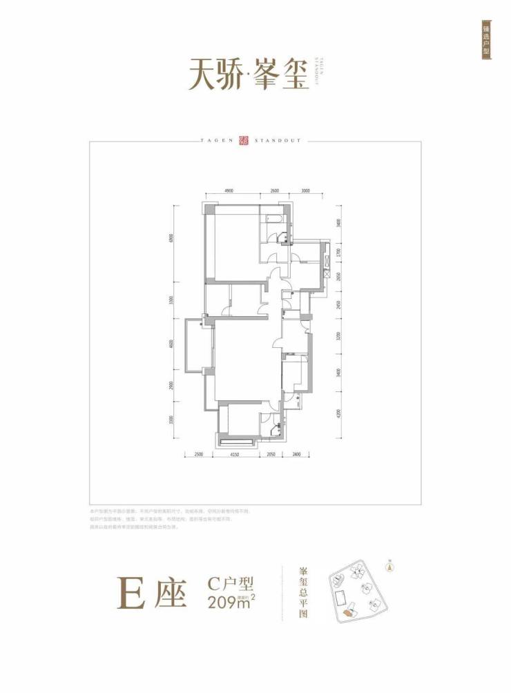 E座:约209-211㎡4房3卫 南北通