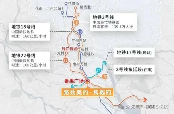 番禺广场预计2027年将以TOD模式、“地下商业+地上公园”的姿态全新亮相,国内建设体量最大地铁站将在此落成,汇集地铁3号/18号/22号/17号(规划)/3号线东延(在建),相当于“花城广场2.0”,为番禺打板“超前生活示范场域”,为广州新中轴再添全新坐标建筑。