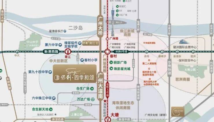 项目位于广州的新中轴线内,广州新中轴是广州发展的“大动脉”,天河北-珠江新城CBD中轴两端土地已发展饱和,顺应“南拓”发展趋势,未来的发展重心将落到海珠。