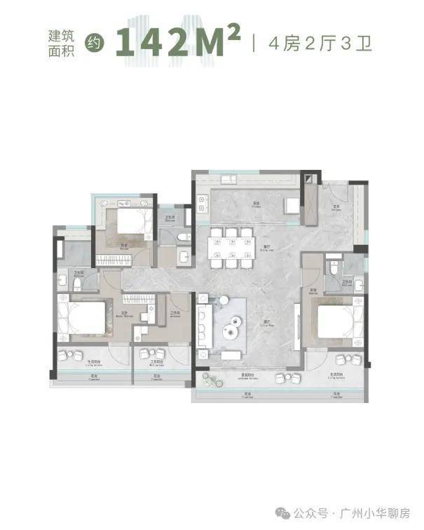 #2 建面约142m² | 4空间二厅三卫
