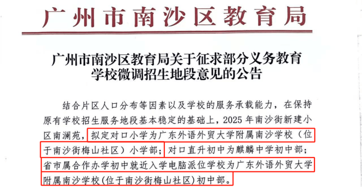 拟定广外附属南沙学校为滨海花城的对口小学,以及就近入学电脑派位学校(初中部)。(入学情况以教育局最新招生文件为准)
