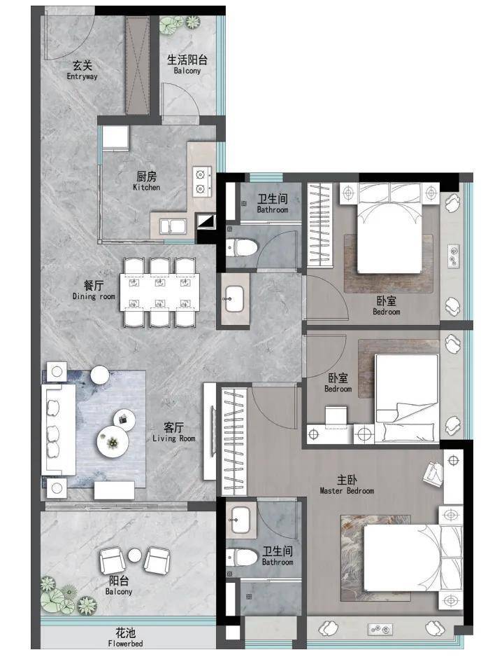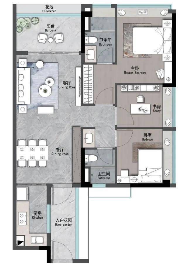 建面约107m² | 4空间二厅二卫