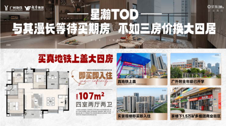 星瀚TOD正处于清盘倒计时阶段,以历史最低价让利,27X万起就能入手最笋四房,仅剩最后64套,机会难得。作为六年成熟大城,由广州地铁与越秀集团双国企联袂打造,品质有保障,实景现楼即买即住,今年买房今年就能入住,直接省下10万租房成本。在2025年番禺区107 - 114㎡四房280 - 350万总价段中,成交金额位居TOP1,是番禺全能楼王的优质之选。