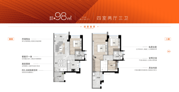 :总经理特批限时臻装名额,总价31X万起。采用十字排布,通风采光佳,私密性强。单层层高约2.9m,隔音与舒适度更高,是主城稀缺的真正复式,全番禺仅此一处小面积上车真正复式。入户花园、飘窗赠送,上层可改豪宅级三进式大主套,98㎡能住出127㎡的享受,107㎡能住出140㎡的享受,使用率达130%。多赠送功能设计,可4 - 5 - 6房随心改造,多卫设计让双层起居互不影响。