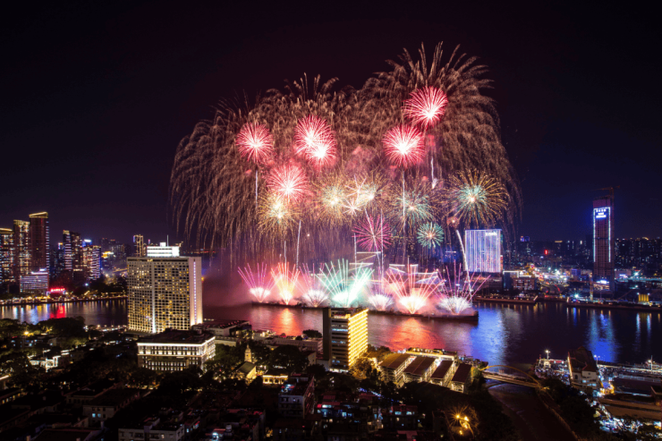 白鹅潭江畔超级观景台实景(来源:南方日报2025年春节烟花汇演)