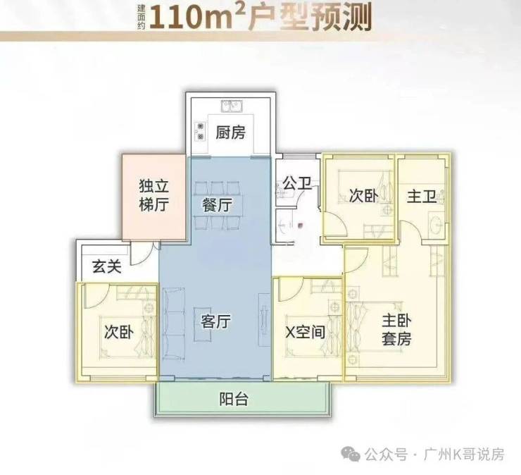 阅璟台88㎡也能做到南北对流(1栋1条梯腿),99㎡以上全部南北对流。