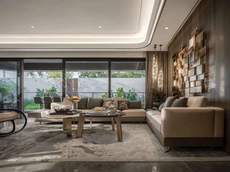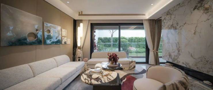 对标汇悦台的外立面,大面积玻璃幕墙,让室内采光与景观视野最大化,极致大宅体面,为都芯奢邸再造范本。