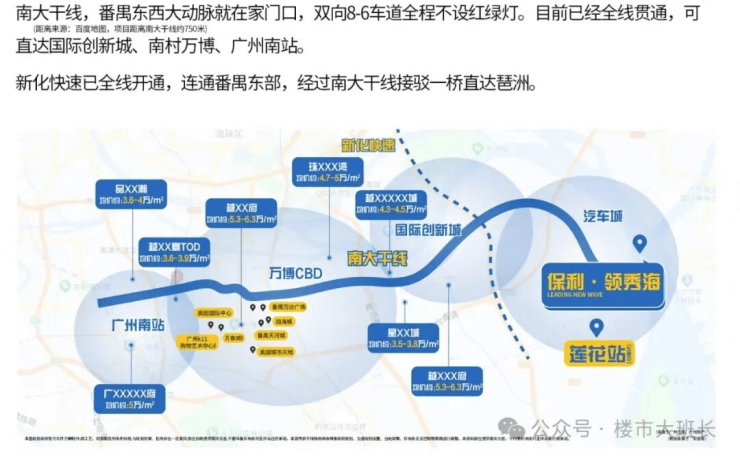 后续周边有规划地铁8号线东延线{莲花湾至万胜围}预计2027年底通车,全程8个站,通车后,莲花湾到海珠只要20分钟,不过站点距离项目也不近