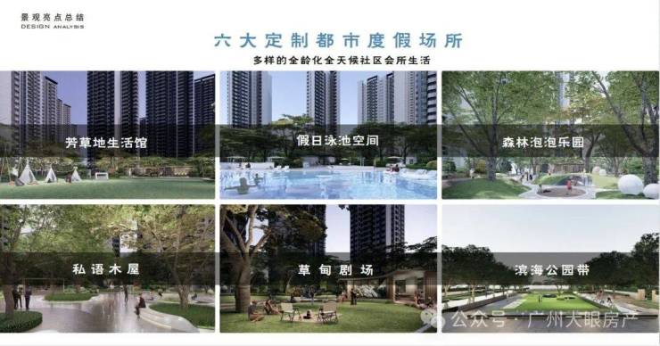 自带3个园林,约12万方景观面,举目风景,900m环形跑道,1个酒店式假日泳池,全龄化配套,泛会所场/儿童乐园 ,主入口两侧设滨海花园,下楼即游园