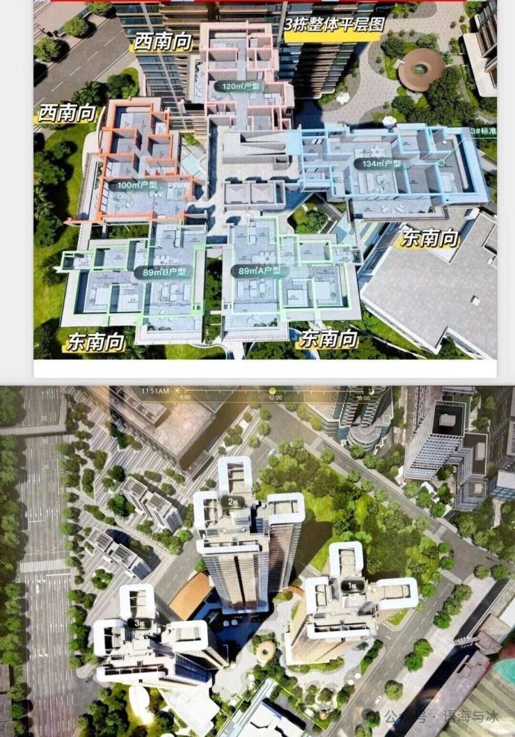 3栋楼均为两梯五户,无论户型大小,所有单位全部朝南,使用率可达到110%。