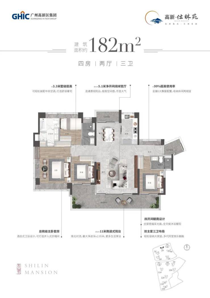 【182㎡四房二厅三卫】