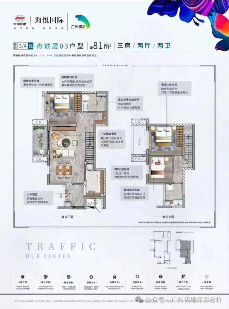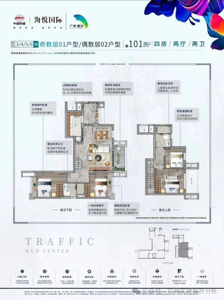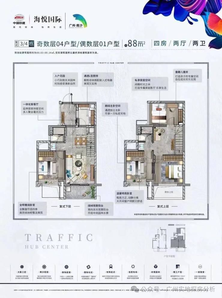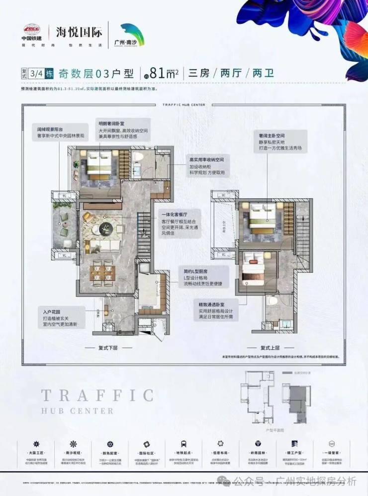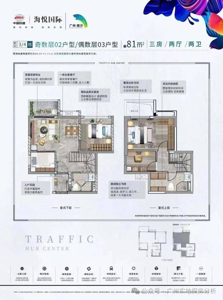 南沙唯一在售咬合式小户复式81-101㎡,高使用率:约85~104%,买一层得两层。