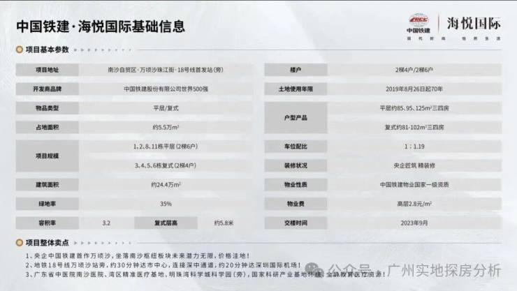 中国铁建海悦国际位于广州南沙区万顷沙板块,是南沙枢纽区块的住宅项目,由世界500强央企中国铁建开发。
