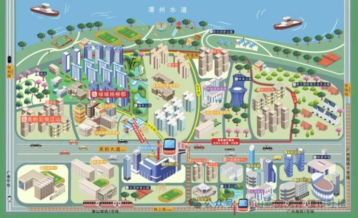 地铁:广州地铁7号线美的大道站(900米)走路15分钟左右