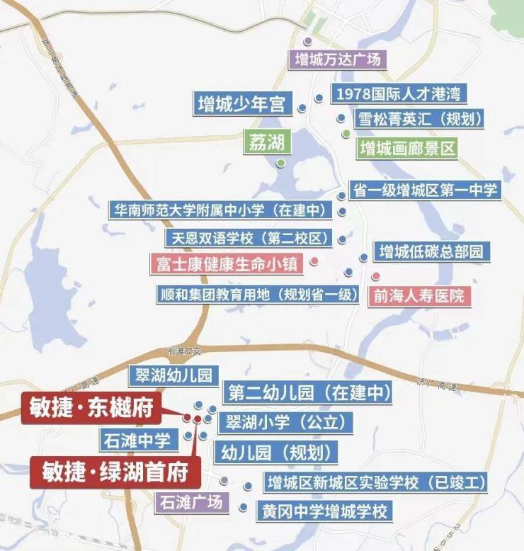 周边汇聚黄冈中学增城校区(距离双盘约1.8公里)、