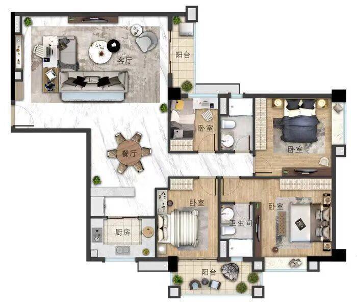 六期建筑面积约95㎡——南向全明三开间,全屋自带高光】3房2厅2卫2阳
