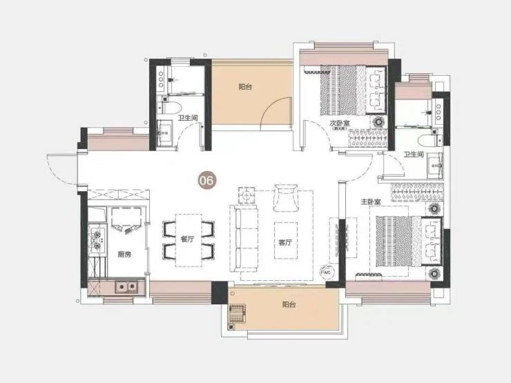 七期建筑面积约86㎡——菁英自在房 奢阔横厅主套设计】2房2厅2卫2阳(其中1阳可作为创意空间)