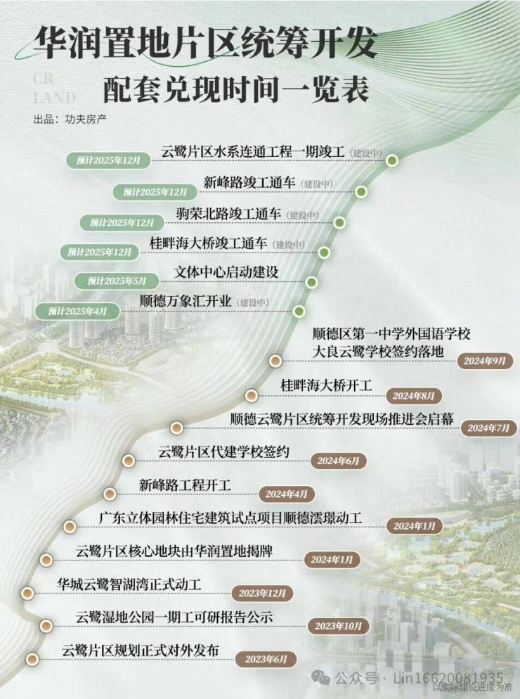 ----------华润代建、配建的4大配套----------1️⃣商业:顺德万象汇(华润配建)。华南区域规模最大万象汇,4月25日已开业,汇集340+品牌2️⃣公园:云鹭湿地公园(建面约66万㎡;华润代建、代运营)、驹容万象公园(华润配建)3️⃣教育:顺德一中外国语学校大良云鹭校区(华润代建,公立小学+初中;预计2027年6月交付)、顺德机关幼儿园(华润配建,18班,又名华辰幼儿园;预计2025年9月开园)4️⃣文体:文体中心(华润配建,代运营),含游泳馆、篮球场、足球场、羽毛球场、演艺剧场等