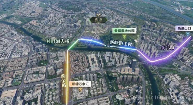 --------------市政公路配套--------------1️⃣桂畔海大桥:中国交建承建。桂畔上东别墅区旁,预计2025年12月竣工通车。届时从东区直达澐璟、云鹭板块。2️⃣新峰路(下沉隧道):中铁大桥局承建。连接东乐路、桂畔海大桥、驹荣北路,预计2025年12月通车。下穿湿地公园,减少对生态环境的影响。3️⃣地铁站:佛山地铁3号线 驹荣北路站A出口;另有顺德一中站A出口(百度地图测距直线距离1.5公里)