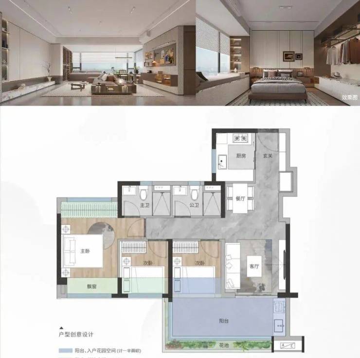 78㎡3房2卫,独立入户花园,约5.5m宽幕阳台,竖厅一体化设计,一线江景私藏,揽自然风光。