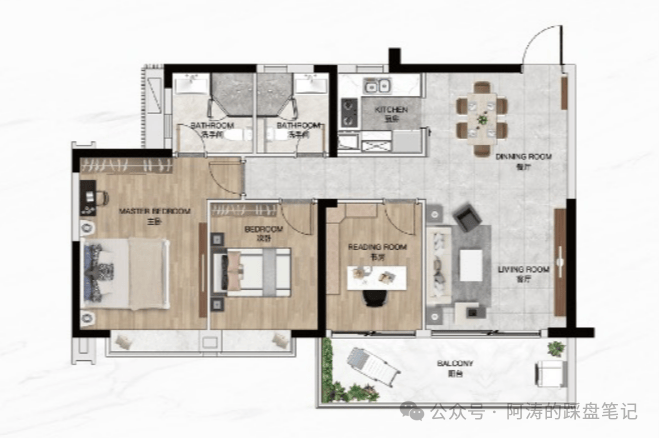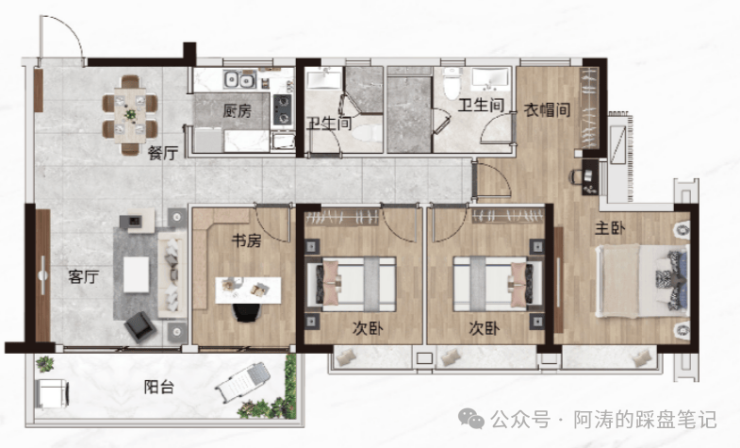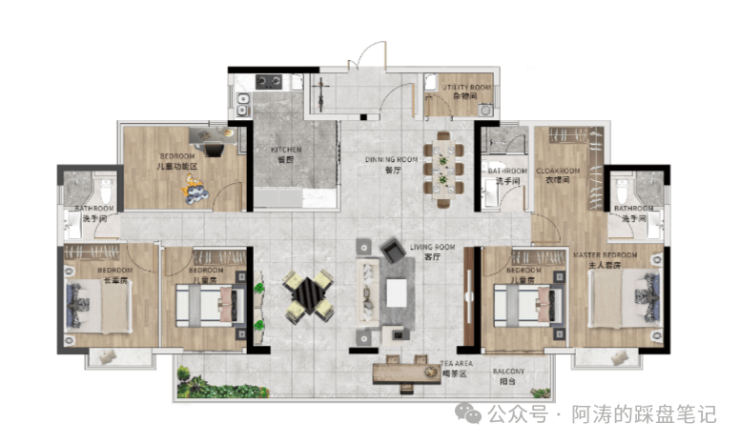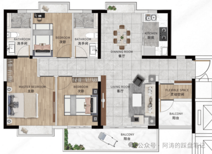 2⃣A户型:117㎡,百变四房两厅两卫🔝