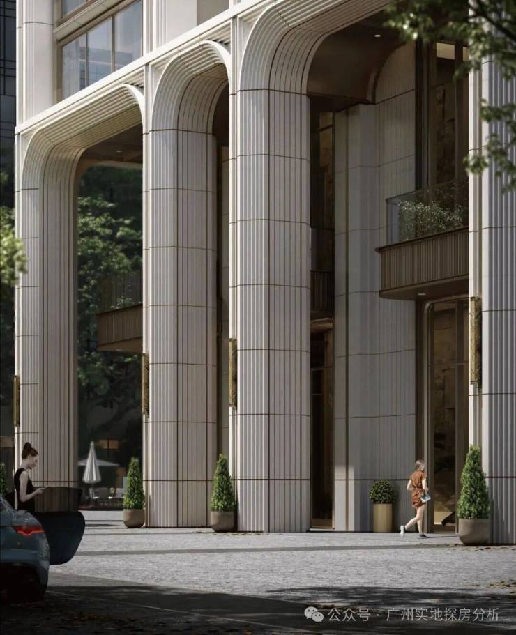 建筑立面:由GAD大师团队设计,融合曼哈顿现代美学与广府文化元素,采用全玻璃幕墙、断桥铝合金+Low-E中空夹胶玻璃等材质,兼具美观性与隔音、隔热性能。