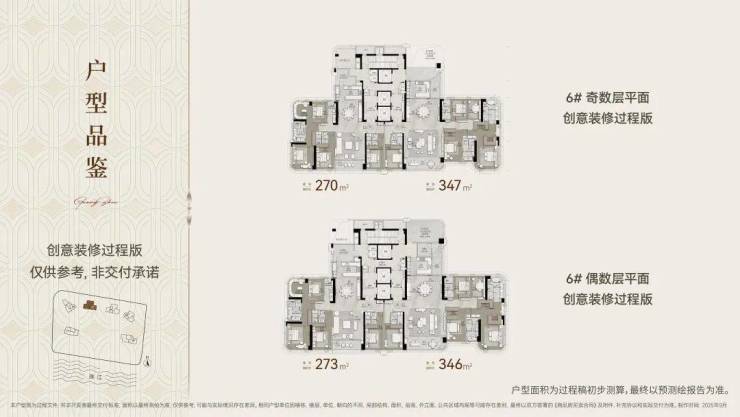 「保利玥玺湾」小区是半围合式结构,面积段是203-222-227-237-273-347-411-436-630㎡大平层,样板间能看的有三个237-347㎡的。
