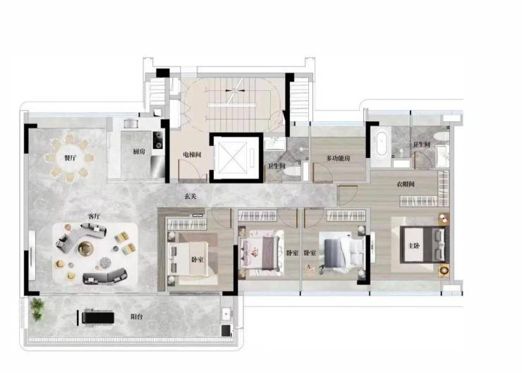 健康人居:采用“三元健康系统”(水质、空气、声音防护),搭配贝克洛系统门窗及霍尼韦尔新风系统,保障居住健康