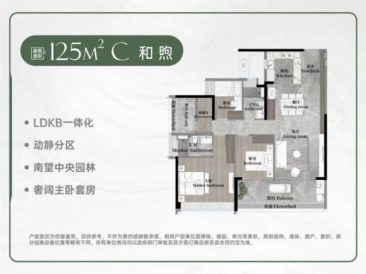 LDKB奢阔厅、宽幕景观阳台、主卧小家化等亮点呈现,兼顾尺度与舒适度需求。