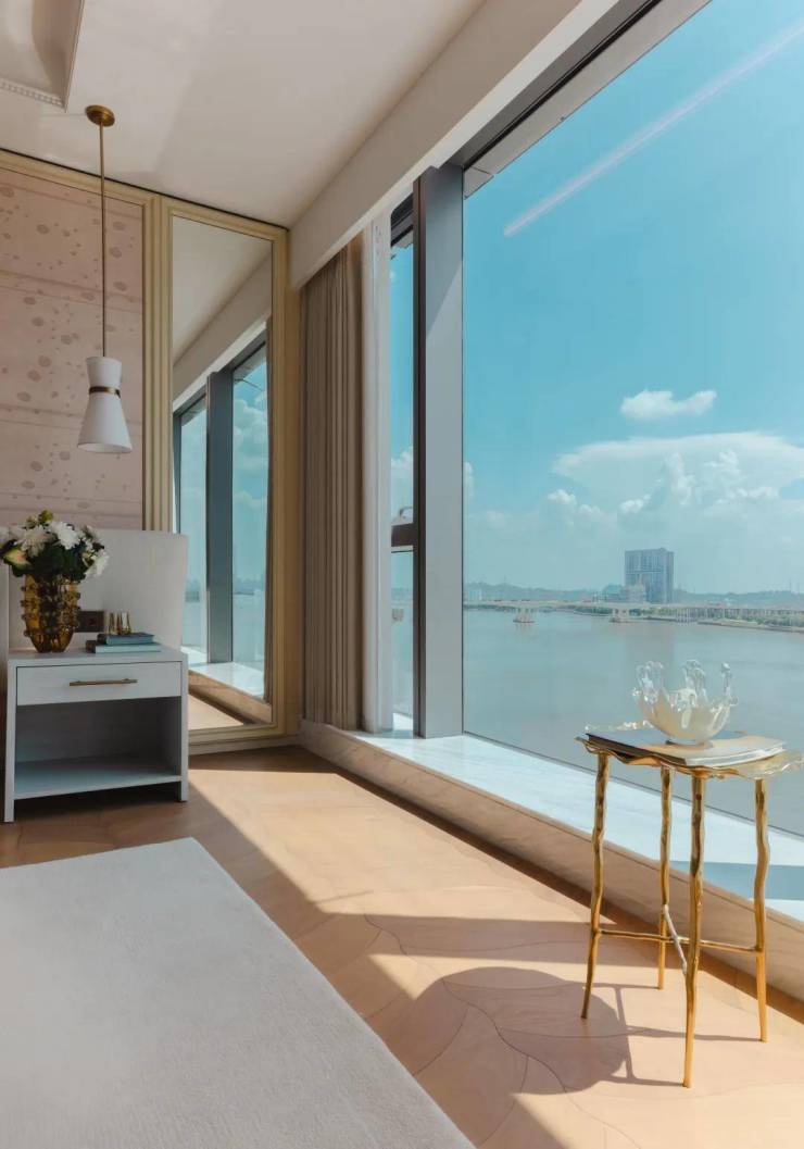 啟江42序落子广州国际金融城东区起点位,这里汇聚了纽约、伦敦、上海等全球金融中心的精华,总部经济云集,精粹资源凝聚,亿级豪宅连片而起;项目占地约7601平方米,建筑面积约56247平方米,由广州尚品宅配家居股份有限公司开发;整个金融城约8平方公里的土地上,约80%被赋予金融总部、数字经济等国家级战略使命,而留给一线亲江生活的土地,仅仅只有约0.3%;啟江42序由汉森伯盛、CCD、普邦股份等三大顶尖设计天团联袂打造,从建筑外观到室内设计均追求极致品质;外立面采用木色陶板与全景玻璃幕墙,以“曲水流觞”的涟漪造型呼应珠江文脉,同时融入垂直生态理念,打造空中绿岛与可呼吸的建筑肌理;建筑分为南北两座塔楼,楼高约131.9米,270°江幕会客厅、云端总部办公区与新零售体验空间,构成“垂直城市”的立体场景;每一处细节都彰显着对品质生活的极致追求
