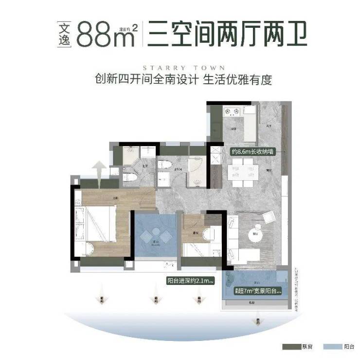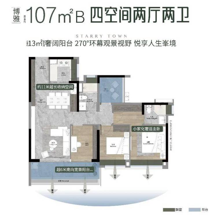 · 畅享双面宽观景阳台,飘窗拓宽功能空间