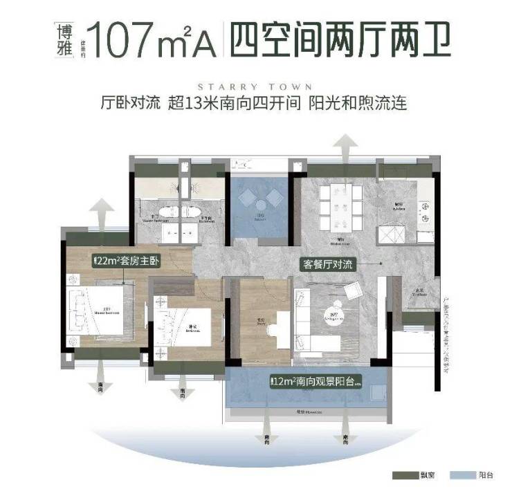 · 4.5 开间朝南,客厅主卧双南北对流