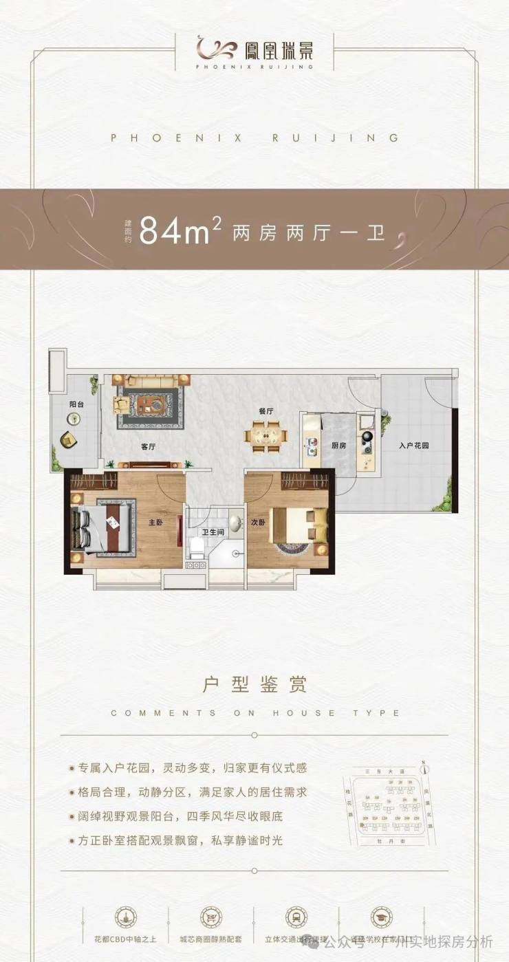 1、地段核心:位于花都区府板块,是花都行政商业、教育、医疗等配套最成熟的区域,周边有区政府、花都湖、融创文旅城等重要项目,城市界面好,居住氛围浓厚。