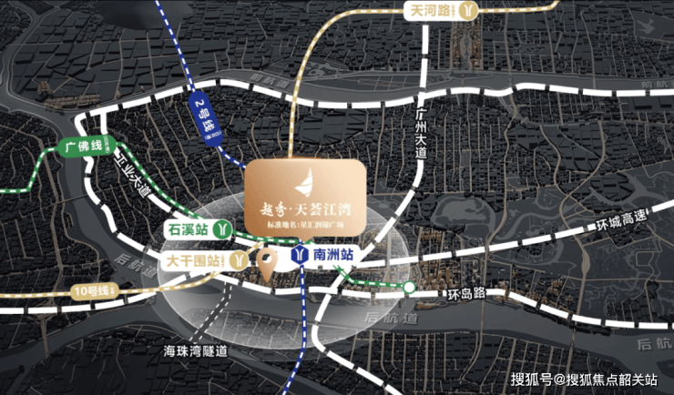 越秀天荟江湾雄踞广州海珠区珠江后航道核心板块,坐拥“一江两岸三带”战略红利。项目距离地铁2号线/广佛线南洲站仅800米,10分钟直达琶洲CBD,20分钟通达珠江新城,30分钟覆盖全城核心商圈。周边环城高速、新光快速、南沙港快速三纵三横路网交织,自驾出行畅达无阻。更毗邻海珠湿地公园、瀛洲生态公园,负氧离子含量达市区的3倍,实现“出则繁华,入则宁静”的居住体验。