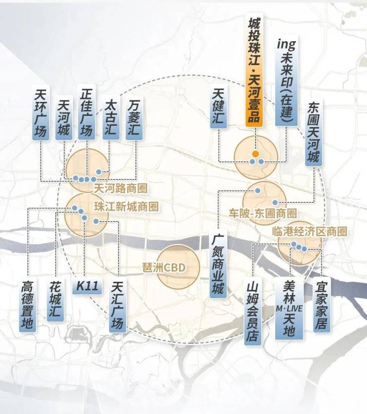 周边还有4大繁华商圈,珠江新城商圈、太古汇商圈、金融城商圈及奥体商圈环伺,