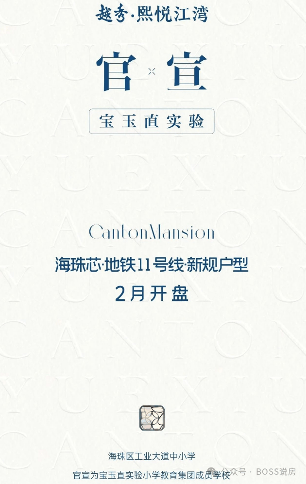 目前项目正式官宣了小学是海珠区工业大道中小学,并且纳入宝玉直实验小学教育集团成员学校,计划更名为广州市海珠区宝玉直实验星悦小学。