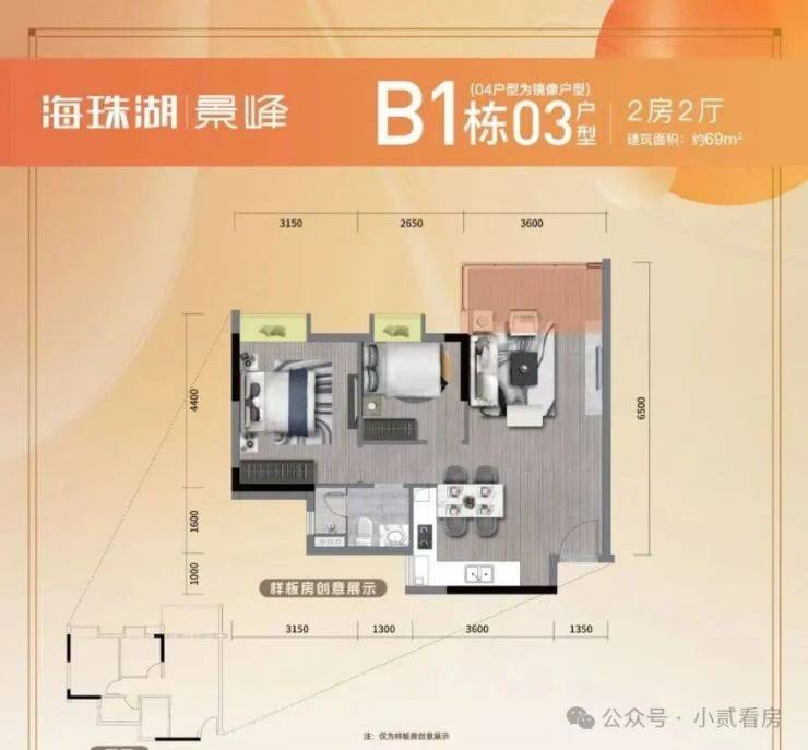 建面约68㎡2房2厅