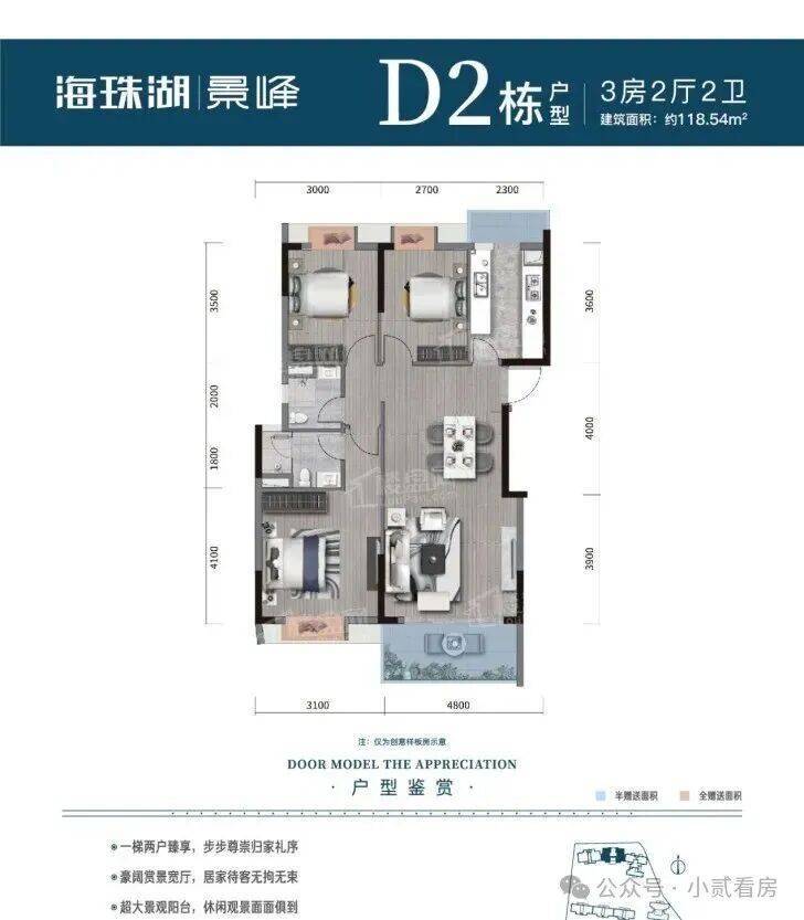 无遮挡视野,居家生活处处有景,三开间朝南,全明空间,大面宽采光,百变空间,两房变三房,全优成长户型,U型厨房,科学动线,烹饪美好时光。