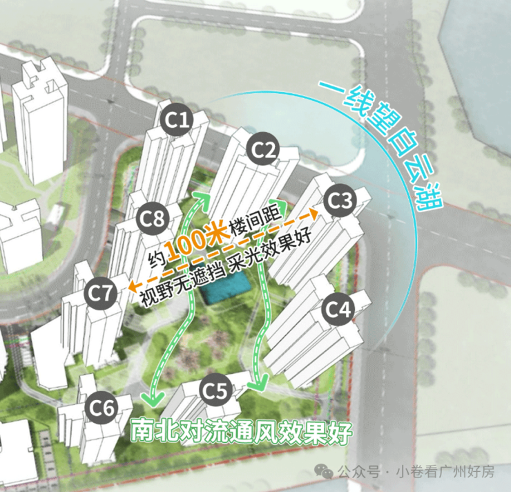 越秀天悦云湖位居白云湖头排地段,三期组团北、东视角望湖,视野极佳,享全维度城市顶级配套资源,是广州主城区湖居的第一选择。