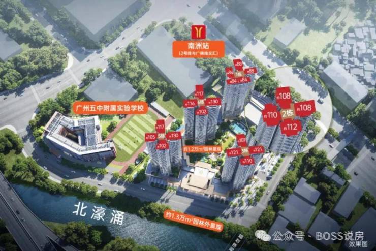 位于广州海珠区海珠湾心地带,紧邻地铁 2 号线和广佛线的换乘站南洲站,东邻繁华的珠江新城,西靠广佛线,遥望广州塔、海心沙等知名地标