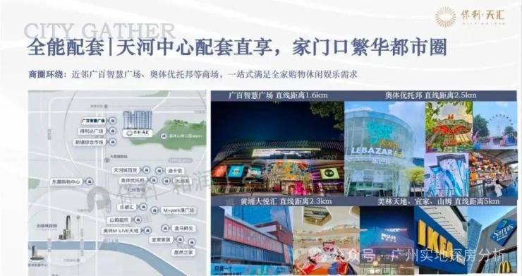 项目自身二三期建有约600米风情商业街,目前已与全家星巴克、肯德基、华润万家和必胜客等大品牌达成签约。项目坐拥天河万科广场、优托邦、天河城百货三大商圈。