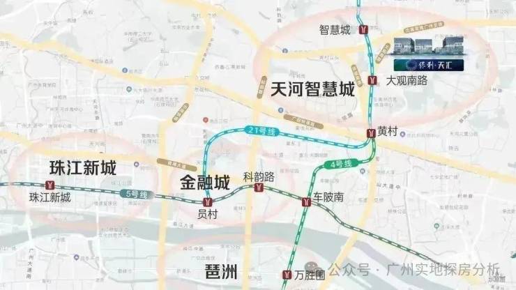 项目距离地铁21号线大观南路站约1.5公里,一站换乘4号线去往金融城、琶洲,4站到员村换乘5号线直抵珠江新城。距离最近公交站大观中路南站约500米。自驾周边有大观路、沈海高速、广深高速、广园快线、环城高速,还有在建的机场第二高速。