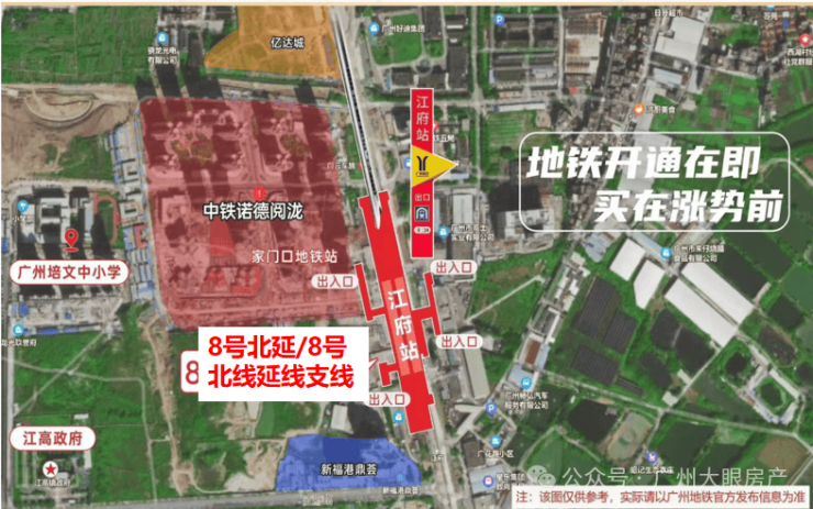 家楼下就是双地铁8号线北延段/北延段支线【江府站】,目前工程进度2%,未来坐地铁6站珠江新城CBD,10站北京路商圈、直达广州市政府,每年达50-100万人流量。