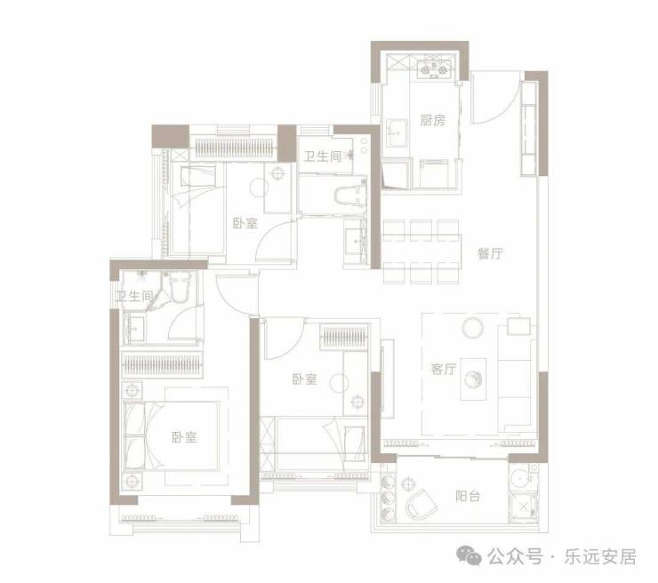 面积:79-85㎡3房1卫,91-95㎡3房 2卫,125㎡4房2卫