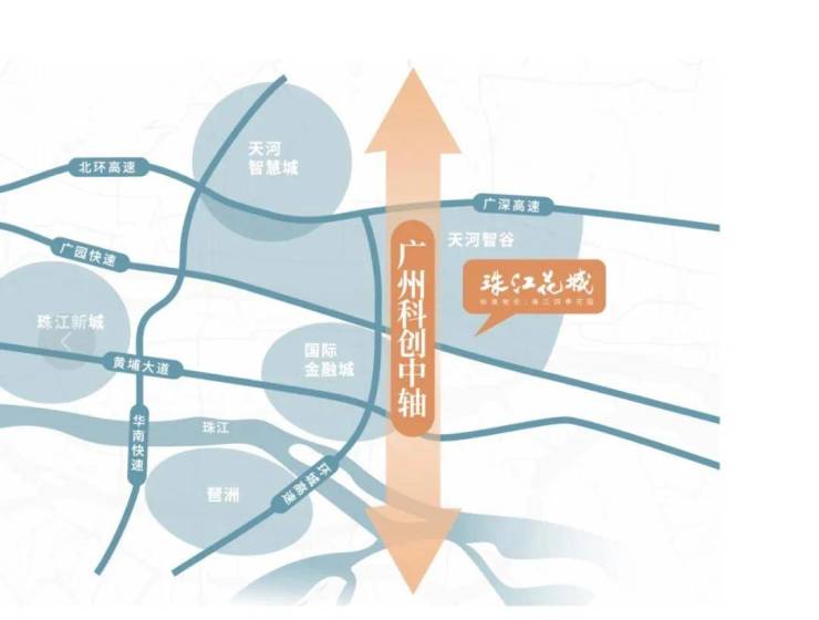 珠江花城位于广州科创中轴之上,毗邻天河智谷,与琶洲CBD、金融城CBD三足鼎立,聚合三大CBD高阶资源。