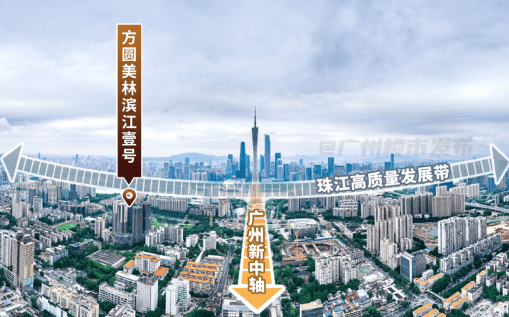 项目北面距珠江约 800 米,北向户型可直望广州塔,景观视野堪称无敌,同时尽享交通便利、名校环绕、配套完备的城央生活。